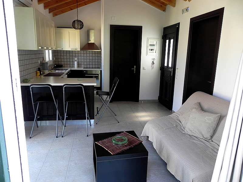 Ess/Wohnzimmer mit Küche, Dusche/WC und Veranda.