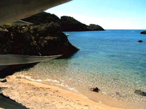 Strand (feiner Kies/Sand). Zum Ortszentrum ca. 800 m. Nach Korfu